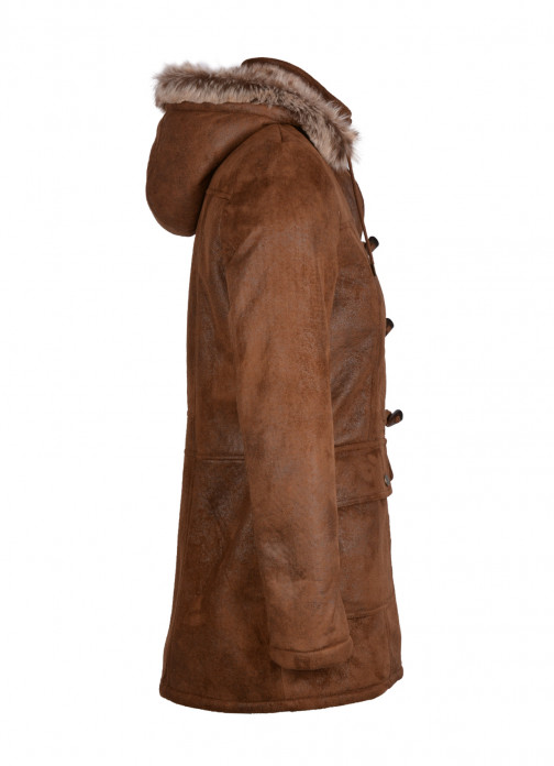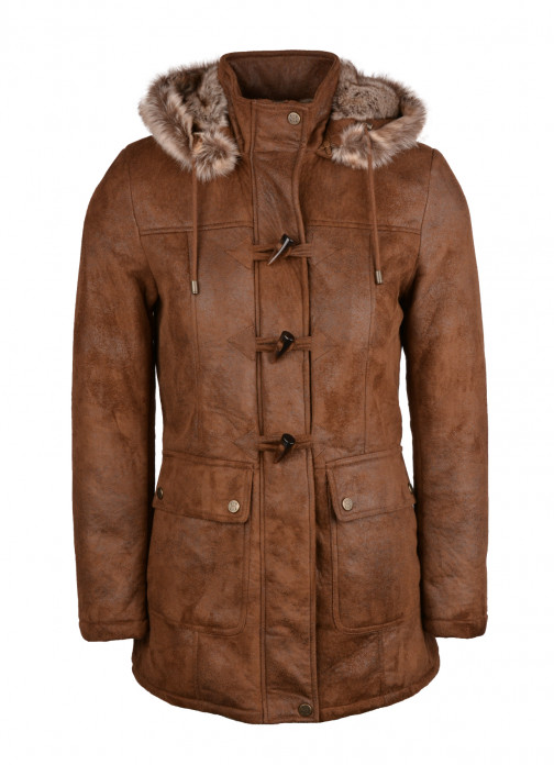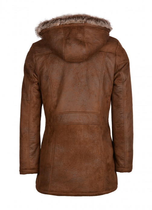 Stay snug and stylish with the practical Hintertux hooded faux sheepskin duffle coat, newly developed in a nutmeg brown colourway.