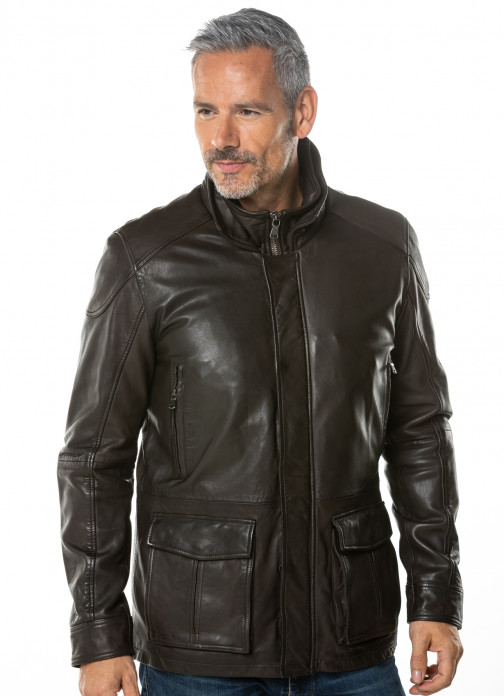 Exude luxury and style in our Johnno leather coat. From the UK sourced, soft buttery aniline down to the brushed metal detailing this jacket has it all, featuring four external pockets two with a flap closure and two zipped to keep your essentials safe as well as traditional brushed metal, central zip and popper fastening.
