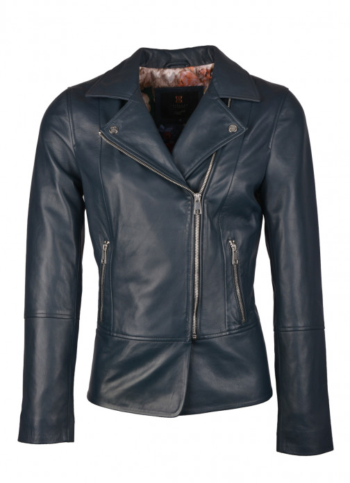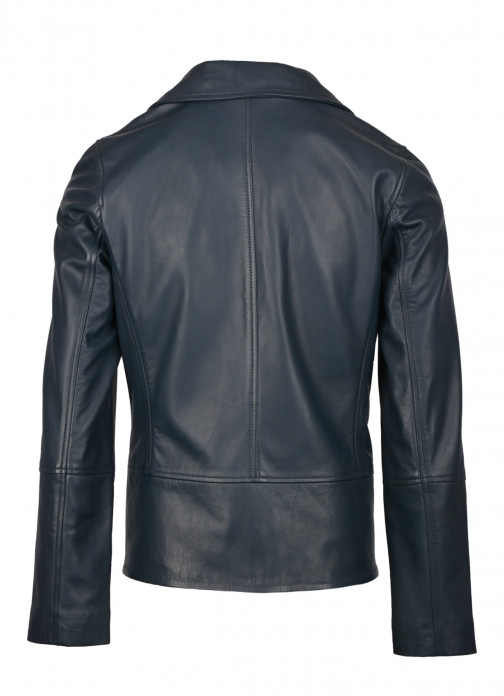The Lindale leather jacket in navy presents a classic biker styled jacket at a slightly longer length.