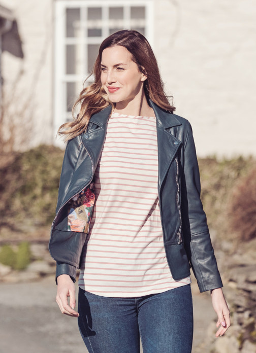 A staple navy hue, the Lindale will add style and sense to your wardrobe. Crafted in the softest UK sourced aniline leather for a premium feel and for quality that lasts. The Lindale is complete with authentic biker features including a press stud lapel collar and asymmetric zip fastening.