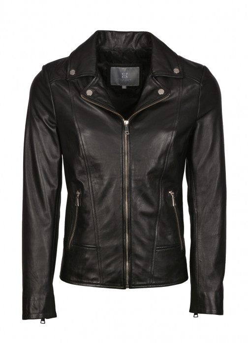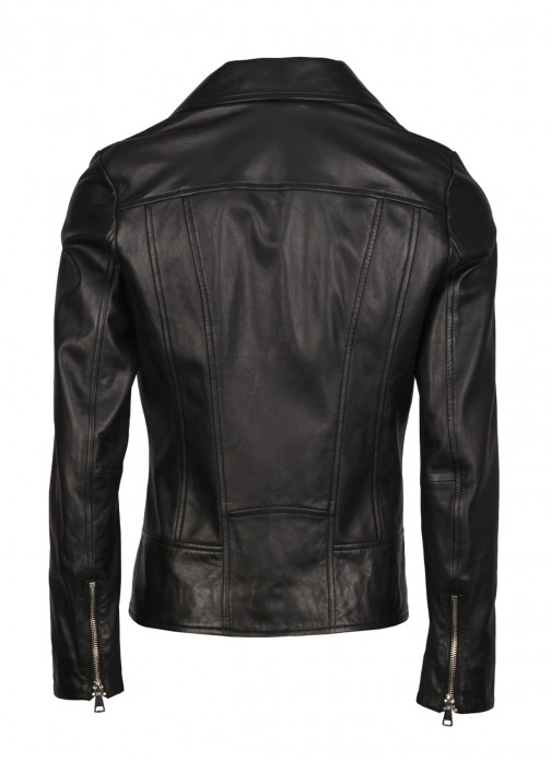 NEWBY CENTRE ZIP LEATHER BIKER JACKET IN BLACK