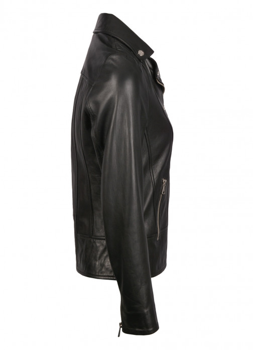 Lovingly crafted from UK sourced aniline leather the Newby biker jacket is soft, supple and hard wearing. With a luxe feel and premium image it features a centre zip fastening, zip fastening pockets and a classic collar with double lapels and Kiwi Leathers International LTD embellished poppers for a classic aesthetic. With silver-tone detailing this jacket is designed with a feminine fit that serves to enhance your silhouette.