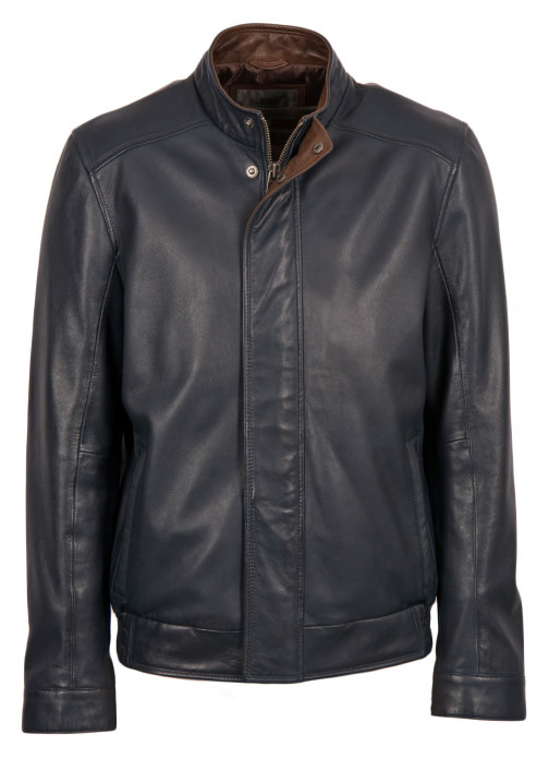 An understated, classic design the Swinside leather bomber jacket in navy will instantly elevate your new season wardrobe.
